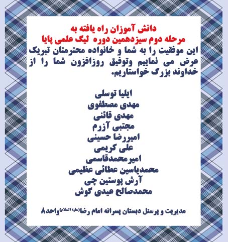 و آرزو داریم همچنان با تلاش و جدیت به مسیرتان ادامه دهید