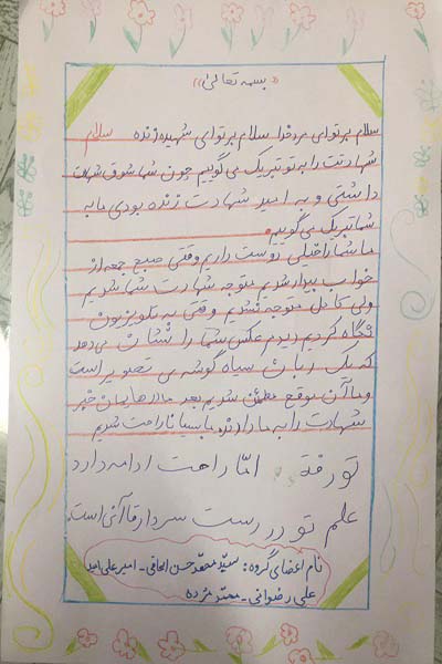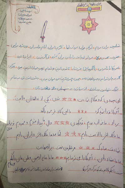 اجرای طرح شهید پژوهی توسط دانش آموزان پنجم دو