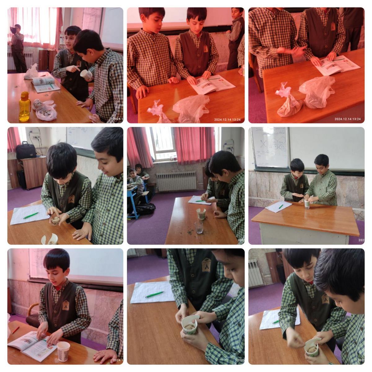 روش اجرا: دانش آموزان گروه ابن سینا با استفاده از تجهیزات ساده فسیل صدف را در کلاس درست کردند و پس از چند روز و گذشت زمان فسیل آنها آماده شده بود