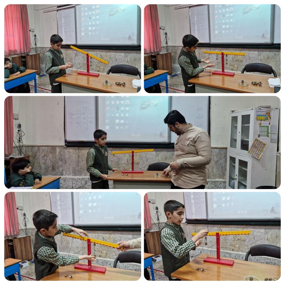 روش اجرا : با کمک ابزار کمک آموزشی مبحث اهرم ها و ایجاد تعادل در دو کفه یک ترازو یا اهرم به روش عینی و بازی وار سازی دروس آموزش داده شد.